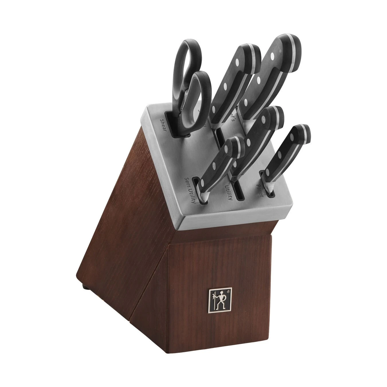 This Classic 7-Piece self-sharpening knife block set features the most essential knives for every household. From the 4-inch paring/utility knife, ideal for peeling vegetables and segmenting fruit, and the all-rounder 8-inch chef’s knife, this set encourages tireless cooking.