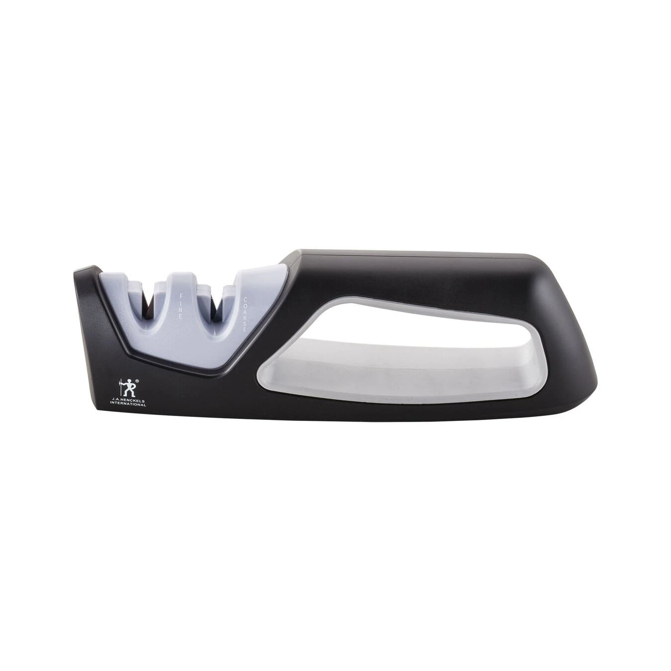 The handy J.A. Henckels Handheld Knife Sharpener offers a simple solution to knife care. Featuring both coarse and fine ceramic grits, you can maintain the sharp edge of your blade in one innovative tool. Labeled for easy use, the sharpener has an easy-to-hold handle that is contoured for comfort.Suitable for both left- and right-handed use, safety features include a unique grip that keeps fingers away from the knife blade and a non-slip rubberized bottom for stability. With this handheld knife sharpener, caring for your knives has never been easier. And longer-lasting knives make for happier home chefs.Henckels makes essential kitchen tools that every home chef needs. Each product offers high quality at an exceptional value. Created in 1895 by Zwilling J.A. Henckels, this value-driven brand guarantees the same durability, design and ease of use for which the global company is known. Equip your kitchen with expertise with Henckels.