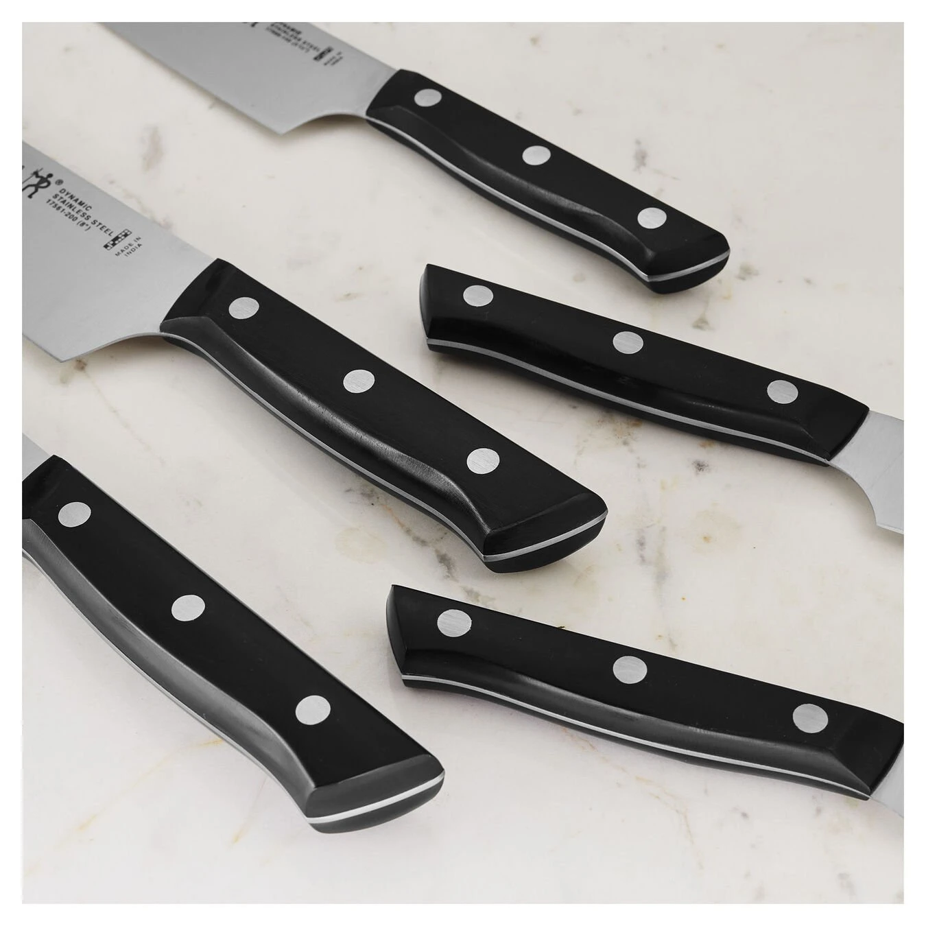 - Knives fabricated from high-quality stainless steel