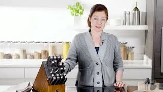 Henckels makes essential kitchen tools that every home chef needs. Created in 1895, this time-honored brand offers high quality at an exceptional value.Sharpness is always in reach with Henckels Self-Sharpening Statement Knife Blocks. The self-sharpening slots boast built-in ceramic honing wheels that automatically sharpen when knives are stored or removed. The remaining slots are for serrated knives, whose toothed blades never need sharpening.With these must-have knife blocks, enjoy effortless sharpness for precise prep work every time. Plus, their handsome stained ash wood base and stainless steel cap add aesthetic appeal to your countertop.Tailor-made for J.A. Henckels Statement knives, these blocks help you maintain the superior sharpness of their fine edge, precision-honed blades. With a seamless transition from blade to handle, the knives’ fully forged construction provides balance while their traditional triple-rivet handle encourages tireless cutting.