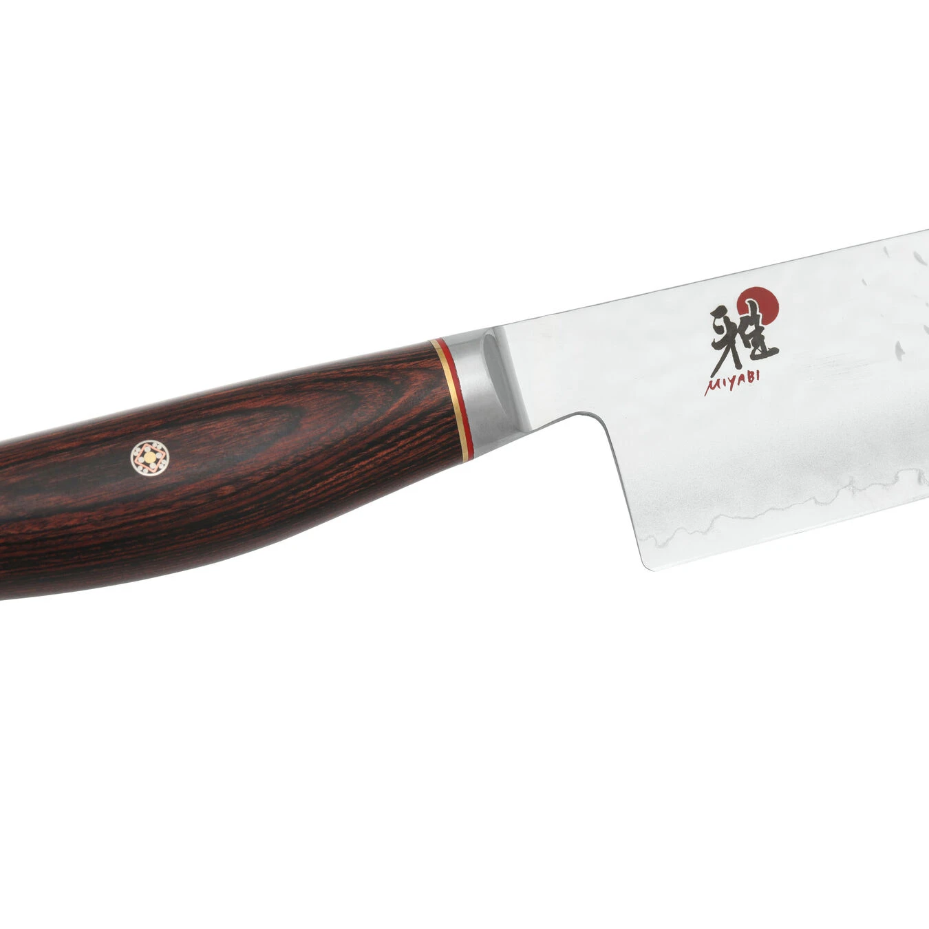 MIYABI celebrates Japanese craftsmanship with Artisan. Using traditional methods and innovative techniques, these knives merge the past and present into an exceptional knife collection.The potent core of SG2 micro-carbide powder steel is layered in a Tsuchime finish. This exquisite, hand-hammered effect helps prevent food from sticking. Each knife features a hand-honed blade finished with a true katana edge, a homage to the samurai swords made in Seki centuries ago.Fabricated with special Cocobolo Rosewood pakkawood, the handles mirror the beauty of the blade. Sophisticated details include brass and red spacers, a mosaic pin and a stainless steel end cap. The attractive D-shaped handle is designed to nestle comfortably in your hand for tireless cutting. Handcrafted in Seki, Japan.