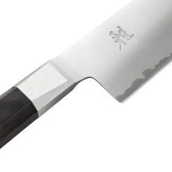The Miyabi Black 5000MCD is a true work of art. The blade is constructed of micro-carbide powdered MC66 steel, which is ice-hardened to an impressive 66 HRC. This results in an exceptionally sharp and lasting edge. The blade is wrapped in 132 additional layers of steel, resulting in a beautiful flower damascus pattern.The handle of the Miyabi Black series is made from unique wood, black ash. The grain and color of the black ash contrasts with the damascus of the blade. The handle is crafted in a traditional “D” shape, providing optimal ergonomics for fatigue-free cutting in the kitchen.Handcrafted in Seki, Japan.