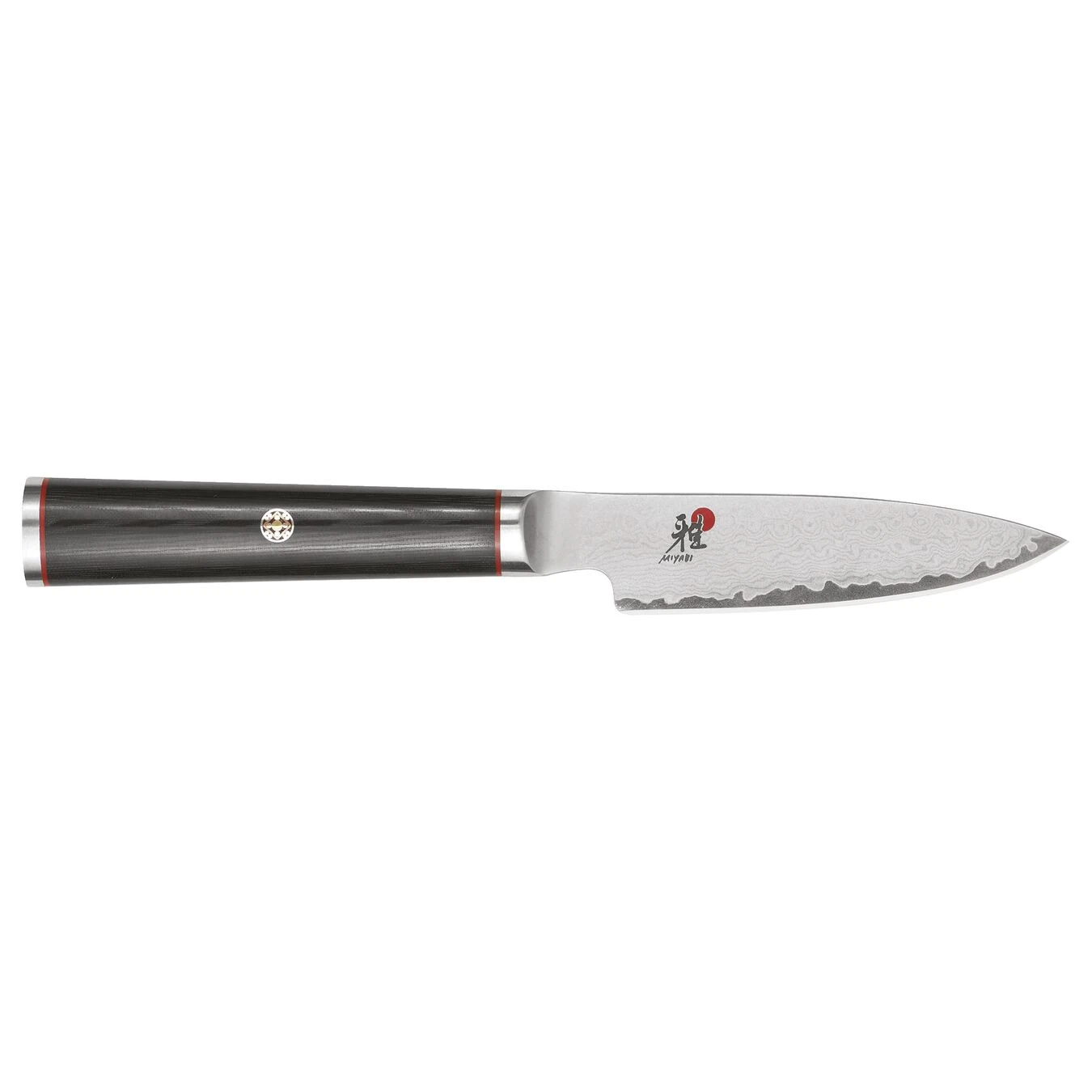 MIYABI strives for perfection with Kaizen – Japanese for “improvement” or “change for the better.” This line of knives combines the best hardening technology with the artistry of traditional Japanese craftsmanship. The resilient core of VG10 super steel is protected by a stunning 64-layer flower Damascus pattern.The CRYODUR blades feature exceptional sharpness and durability thanks to their innovative, icehardening treatment. Then, artisans hand-hone the blades with the historic Honbazuke method. This attention to detail translates into precision cutting for MIYABI Kaizen users.The blade is balanced by a refined D-shaped handle made of black linen Micarta. With a wood-like texture, the comfortable handle won’t slip from your hand and acts as a moisture repellant. Handcrafted in Seki, Japan.