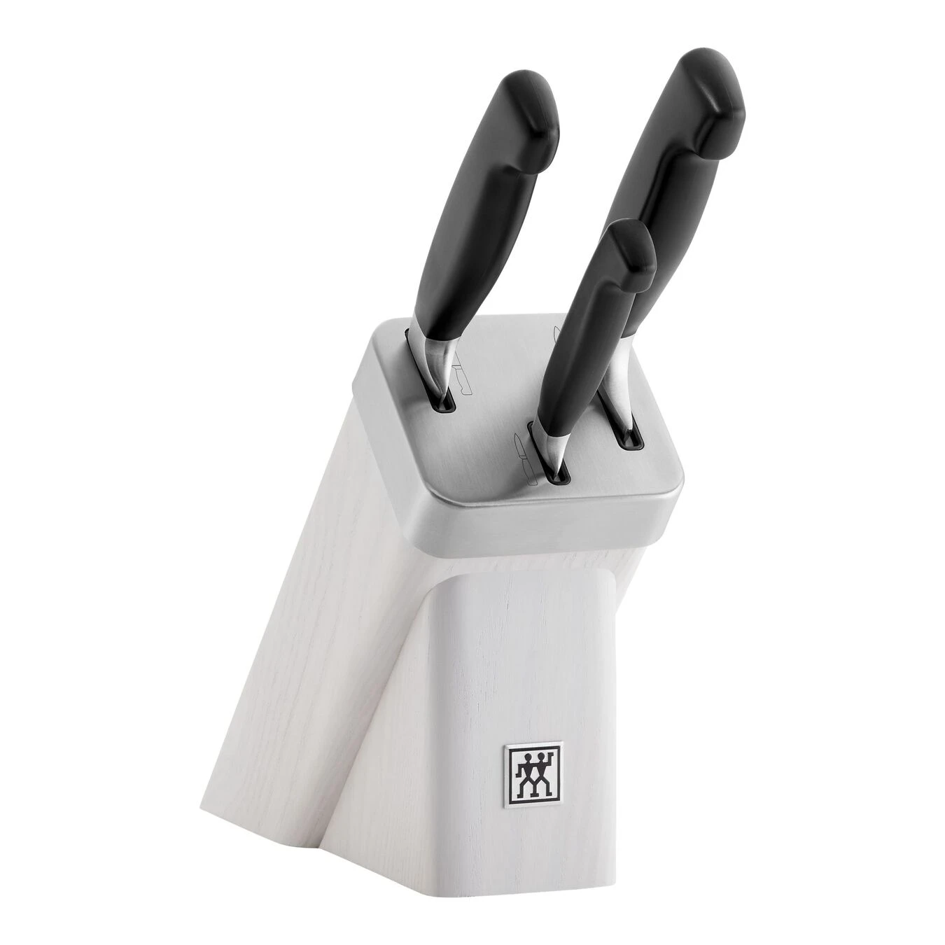 - Knife block available in white, brown, and black