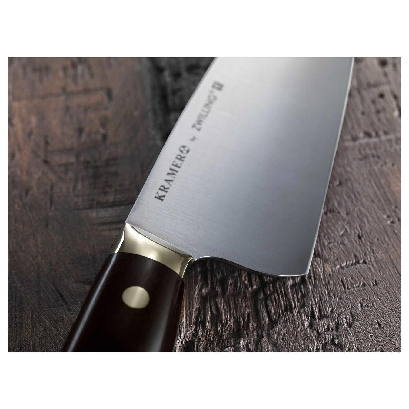 The KRAMER by ZWILLING EUROLINE Carbon Collection is the first line created with Master Bladesmith Bob Kramer. With over 18 years of forging experience, Bob has partnered with ZWILLING J.A. Henckels to craft a knife that is an exact replica of the straight carbon steel knives made in his Olympia, Washington workshop.Bob’s design has an extremely wide blade to maximize knuckle clearance for larger hands and for cutting through large produce and piles of food. Chopped food can easily be transported with this impressive, broad blade.A material nearly lost to the home kitchen, straight carbon steel requires knowledge and care to maintain. In return, owners will be rewarded with a sharpness and keenness of edge that only straight carbon can deliver. Hand-finished with a 3-step process by the most skilled Japanese artisans, the outstanding blade is paired with a stunning handshaped Grenadille wood handle with brass rivets and a Bob Kramer mosaic pin.
